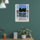 Beautiful swimming pool view, faux window scene, for a windowless office. Very realistic 3d swimming pool theme wall art, optical illusion poster that would look great on an office or study wall.