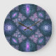 3D Fractal Art Pattern Turquoise Purple Pink Large Clock