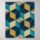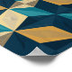 A seamless geometric pattern featuring 3D cube-like illusions created with parallelograms. The design combines deep navy blue, turquoise, beige, and mustard yellow tones, forming a crystal-like abstract effect. The repetition and shading give the pattern a three-dimensional appearance, making it suitable for modern wallpapers, textiles, and digital backgrounds.