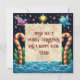 Immerse in festive wonder with this psychedelic Christmas design featuring a serene sun and moon, vibrant holly, candy canes, and a cherubic creature in a wild, hallucination of colour and whimsy.