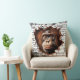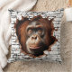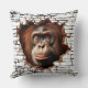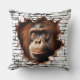 A stunning 3D wall break throw pillow featuring a realistic orangutan emerging through cracked concrete with tropical foliage behind. The hyper-detailed artwork creates an illusion of depth and movement, perfect for animal lovers and safari-themed decor.