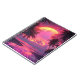 3d sunset on the beach. Retro palms vector sci fi background with ocean. Sun reflection in water. Futuristic landscape 1980s style. Digital landscape
