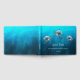 This elegant lake house guest book features an AI created turtle on a turquoise blue ocean background.