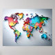 3D Wall Art Water Colour World Map Poster