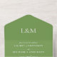 Foliage Green (colour code #769F51) and white typography, text only, monogrammed, minimalist, simple plain wedding invitation which includes a tear-off rsvp postcard (3 in 1 as per images). Item includes senders address, a return address and text template fields for the wedding ceremony and reception as desired (edit text to suit your unique needs). You can also add couples initials, monogram. Modern and elegant budget friendly invitation to suit your needs.