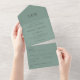 Dusty Green and black typography, text only, monogrammed, minimalist, simple plain wedding invitation which includes a tear-off rsvp postcard (3 in 1 as per images). Item includes senders address, a return address and text template fields for the wedding ceremony and reception as desired (edit text to suit your unique needs). You can also add couples initials, monogram. Modern and elegant budget friendly invitation to suit your needs.