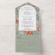 3in1 Olive Green Folk Art Floral BILINGUAL WEDDING All In One Invitation