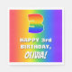 This fun and joyful birthday-themed paper napkin design features a large number “3” with a colourful rainbow spectrum inspired gradient pattern, along with the message “HAPPY 3rd BIRTHDAY,”, and an editable recipient name. The background also features an exciting multicolored rainbow spectrum inspired gradient pattern. Paper napkins like this might be used at a birthday party held in celebration of somebody’s 3rd birthday. [~Z0000573]