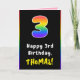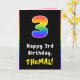 3rd Birthday: Colourful Rainbow # 3, Custom Name Card