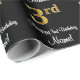 This sophisticated, luxurious, and stylish birthday wrapping paper design features a large ordinal number “3rd” having an imitation/faux gold-inspired appearance, plus the birthday greeting message “Happy 3rd Birthday,” and an editable recipient name in a script-style font. The background is coloured black. Birthday themed wrapping paper like this might be a fun way to wrap a gift or present being given to celebrate somebody’s 3rd birthday. [~Z0000515]