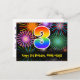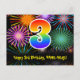 3rd Birthday – Fun Fireworks Pattern + Rainbow 3 Postcard