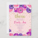 3rd birthday invitation girl, pink purple gold