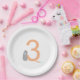 Celebrate with cake! This modern and tender bunny captures a child's unforgettable third birthday celebration. As part of a collection, this plate design is the perfect touch.