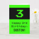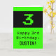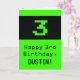 This geeky and fun birthday-themed greeting card design features a large green classic computer gaming style number "3" on the front. It also features the birthday greeting message "Happy 3rd Birthday,", and an editable name. The inside features a custom birthday greeting message, or could perhaps be cleared and left blank if a message is to be written by hand instead. A silly personalised birthday card like this might be a fun way to send birthday wishes to somebody who is celebrating their third birthday. [~Z0000430]