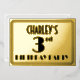 The front of this elegant and 1920s/1930s style inspired third birthday party/celebration foil invitation features a personalised name, a large art deco style inspired number “3rd”, the message “BIRTHDAY PARTY”, and a border pattern consisting of lines. The back features personalised details about the event, such as the date, time, location/venue, and any other information that may be important. Stylish, luxurious, customised invitations like these might be used to invite guests to a birthday gathering being held to honour somebody’s 3rd birthday. [~Z0000592]