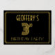 The front of this vintage-style and Roaring Twenties inspired third birthday celebration foil invitation features a customisable name, a large art deco style inspired number “3RD”, the message “BIRTHDAY PARTY!”, and a border pattern consisting of lines. The front also has a black-coloured background by default, but it can be customised to a different colour if desired. The back features personalised details about the event, such as the date, time, location, and any other information that may be relevant. Elegant, luxurious, customised invitations like these might be used to invite guests to a birthday celebration/party being held in celebration of somebody’s 3rd birthday. [~Z0000590]
