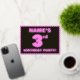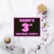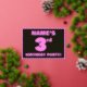 The front of this fun and bold third birthday party/celebration foil announcement/invitation card features a personalised name, a large number “3rd”, the message “BIRTHDAY PARTY!”, and a border, all featuring a feminine light pink and dark pink striped pattern. The back features personalised details about the event, such as the date, time, venue/location, and any other useful information. Personalised invitations like these might be used to invite attendees to a birthday party/gathering being held in celebration of somebody’s 3rd birthday. [~Z0000597]