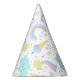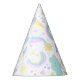 3rd Birthday Party Hat with a funny unicorn that is surrounded by cute pictures of a rainbow, cloud, sun, ice cream.