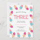 Have a ice cream third (3rd) birthday party for your little one! This adorable birthday invitation features a colourful blue and pink watercolor Popsicle ice creams which is cute and perfect for a summer birthday. All details including (except for age) is customisable. (Other ages and colours also available in my shop!)