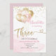 3rd Birthday Invitation, Pink and Gold Balloons, Party Invite, Girls third Birthday, Age 3, Balloons