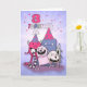 For a sweet little girl who is turning three, this lavender and rose pink birthday card with happy, cute monsters is a sure winner.