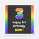 This eye-catching and joyful birthday-themed paper napkin design features a big number “3“ having a multicolored rainbow spectrum inspired gradient pattern, along with the message “Happy 3rd Birthday,”, and a custom recipient name. Paper napkins like these might be used at a birthday party held in celebration of somebody’s third birthday. [~Z0000629]