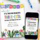 3rd birthday invitation for boy or girl with fun pun and fiesta vibes. This colourful design is headed "adios dos! it's time for [name's] Three-esta" and features a Mexican fiesta theme, complete with cactus, llama and papel picado bunting. Your guests will love the playful pun and vibrant design, which sets the tone for a fun celebration. The invitation is fully customisable, so you can easily add your own details and make it your own. Whether you're planning a backyard fiesta or a full-blown Mexican-themed party, our "adios dos! it's time for a Three-esta" invitation is the perfect way to get your guests excited and ready to celebrate your little boy or girl saying goodbye two and becoming a 3 year old. Check our 3rd Birthday Invitations collection for alternative designs.