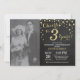 3rd Wedding Anniversary with custom photo. Chalkboard Black and Gold Invitation. Third Wedding Anniversary. Chalkboard Black and Gold Glitter Diamond Background. Gold Confetti. Adult Birthday. Woman or Man Male Birthday Party. For further customisation, please click the "Customise it" button and use our design tool to modify this template.