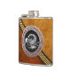 The flask itself is fine. It’s a cheap flask, obviously bought in bulk, however am prepared to overlook that. Given that it is a personalized item, I would have liked to have seen gift boxing instead of the generic packaging. Terrible printing, and/or quality. It’s a cheap, tacky vinyl. It is not cut straight and is also applied in a way that it is overhanging the bottom, causing the glue to catch on items and it will eventually roll and tear, damaging the wrap.