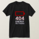 A bold and funny “404 Energy Not Found” t-shirt featuring a glowing red low-battery icon with digital glitch text. Perfect for gamers, coffee lovers, students, and anyone who runs out of energy. Clean, eye-catching, and great for everyday wear.