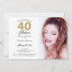 A chic, elegant, 40th birthday photo invitation you can personalise and send out for your fortieth birthday party celebration. The words "40 and Fabulous" in gold glitter and black are set using modern typography. Replace the sample photo with your own. There's a black and white fur design on the back of the card with the text "you're invited" in gold glitter. Matching products, other colours and patterns are available.