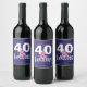 40 and Fabulous Geometric Blue 80s Pattern Wine Label