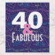 A "40 and Fabulous" 40th birthday design with a geometric 80s and 90s background pattern of dark blue, turquoise, pink, and green, featuring a stylish white and pink text.