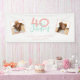 pink and mint modern script stylish multi photo 40 and fabulous birthday party banner design. Modern gold effect script text. Part of a collection.