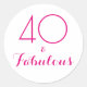 40 and Fabulous | Typography 40th Birthday Classic Round Sticker