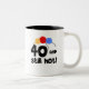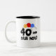 Primary colours balloons and black text that reads "40 and still hot!" on 40th birthday T-shirts, mugs, buttons, cards, and other birthday gear!