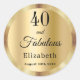 Elegant, classic, 40 and fabulous birthday sticker. A fax gold looking background colour with a golden frame. The text: 40 and fabulous. Templates for her name and a date. Date of birth or the date of the party. Perfect for party favours or as a save the date reminder for your guests.