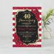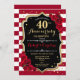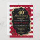 Ruby red 40th wedding anniversary party invitation. Elegant red, black white invite card with faux glitter gold. Features stylish stripes, script font and red roses. Perfect for a 40th anniversary celebration.