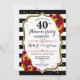 40th Wedding Anniversary Invitation. Elegant design with black & white stripes and faux glitter gold. Features script font and confetti. Can be personalized into any year of anniversary. Message me if you need any further customization.