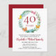 This budget invitation for 40th wedding anniversary features a delicate floral greenery wreath made of wild flowers, plants, and butterflies. Invitation can be easily personalized with your special ruby anniversary information. Back of the invitation features a matching floral garland framing the anniversary dates in elegant white text on a ruby red background.