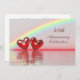 40th ruby anniversary invitation with a rainbow and two shiny ruby red hearts floating on the water. Customise the sample text on the back with your own information for your event.