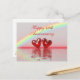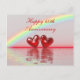 Postcard with my original artwork of two ruby red hearts floating on the water under a rainbow. Customisable text says "Happy 40th Anniversary".