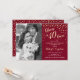 Elegant design in ruby red with faux gold script font and confetti. Message me if you need custom year.