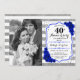 40th Anniversary with Photo - Sapphire Blue Silver Invitation