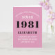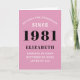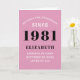 40th Birthday 1981 Pink Black Lady's Personalised Card