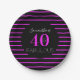 40th Birthday 40 Fabulous Neon Pink Stripe Paper Plate
