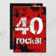 40th Birthday 40 Rocks! Grunge Red and Black A08 Invitation