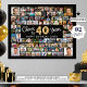 Create a 40th birthday photo memory display printed on poster print utilising this easy-to-upload photo collage template with 92 pictures in various sizes to accommodate pictures of her or him through the years for a fun birthday sign or party decoration and commemorative keepsake. The design features the title CHEERS TO 40 YEARS with gold foil balloon numbers and your custom text (the sample says HAPPY BIRTHDAY NAME) in your choice of text of font styles and colours as well as background colour (shown in black). OPTIONS: The sample is shown in a 36x29" size on Value Paper (Matte); other standard and custom print sizes, paper quality and framing, Instant Digital Download file for printing locally or transferring the design to a foam board, banner, canvas or other product options are available on the ordering page. RESIZING TIP: Choose Custom Size for even borders by changing the height and width proportionately AFTER clicking the UNLOCK icon (looks like a chain link). ASSISTANCE: For help with design modification or personalisation, colour change, resizing or transferring the design, contact the designer BEFORE ORDERING via the Zazzle Chat MESSAGE tab or email makeitaboutyoustore@gmail.com.