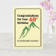 A humourous card for anyone who has reached the age of 40. Featuring a Mountain range with 40 in red at the top of the highest peak. The message is "Congratulations On Your 40th Birthday". The punch-line of "It's All Downhill From Here" is at the bottom. This is all set on a contrasting cream background. Guaranteed to raise a smile with the recipient,. Put your own special 40th Birthday message inside.