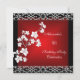 40th Birthday Asian Red Black Floral Silver White Invitation